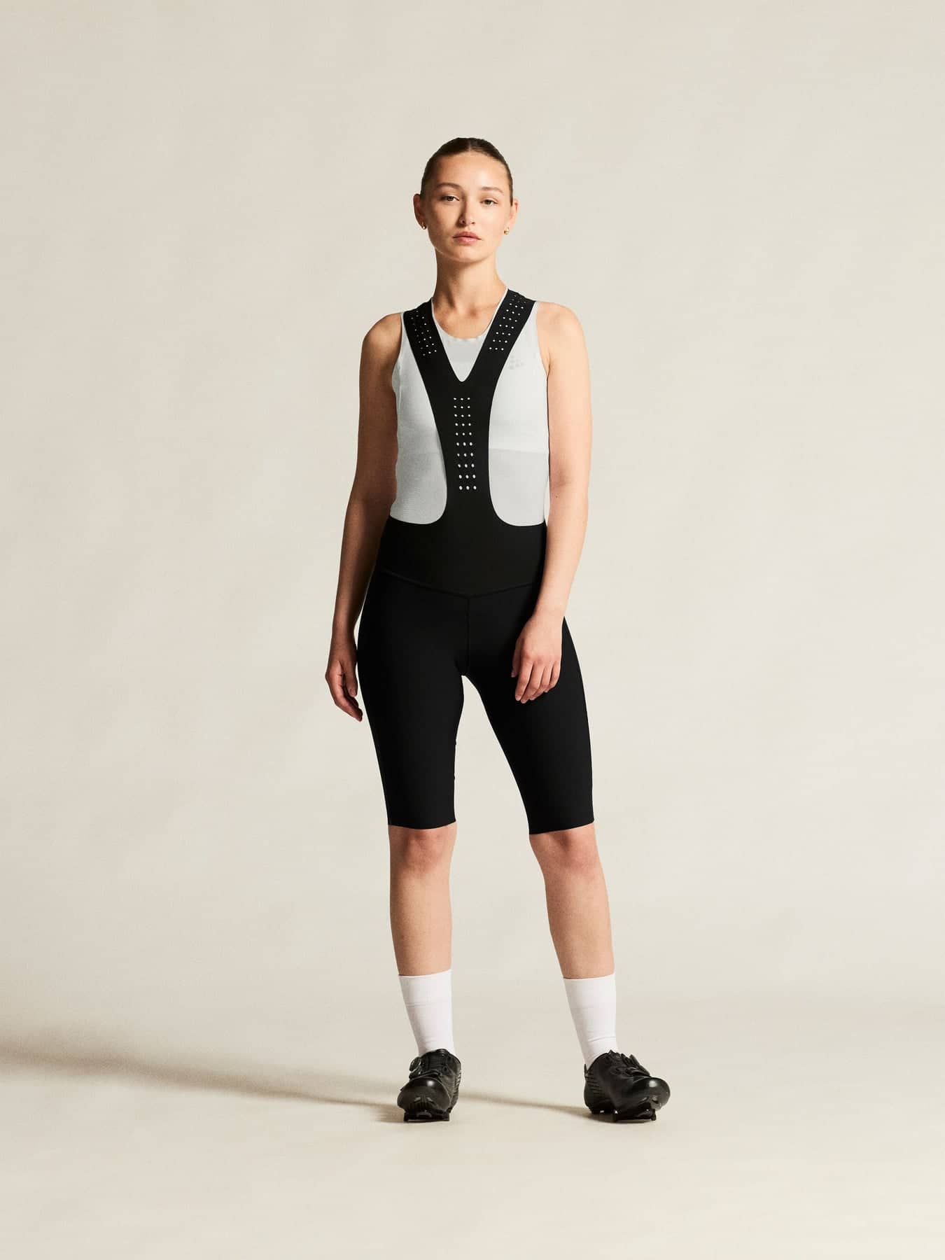 • Siliconen aan de pijpuiteinden zorgt ervoor dat de bibshort goed blijft zitten.