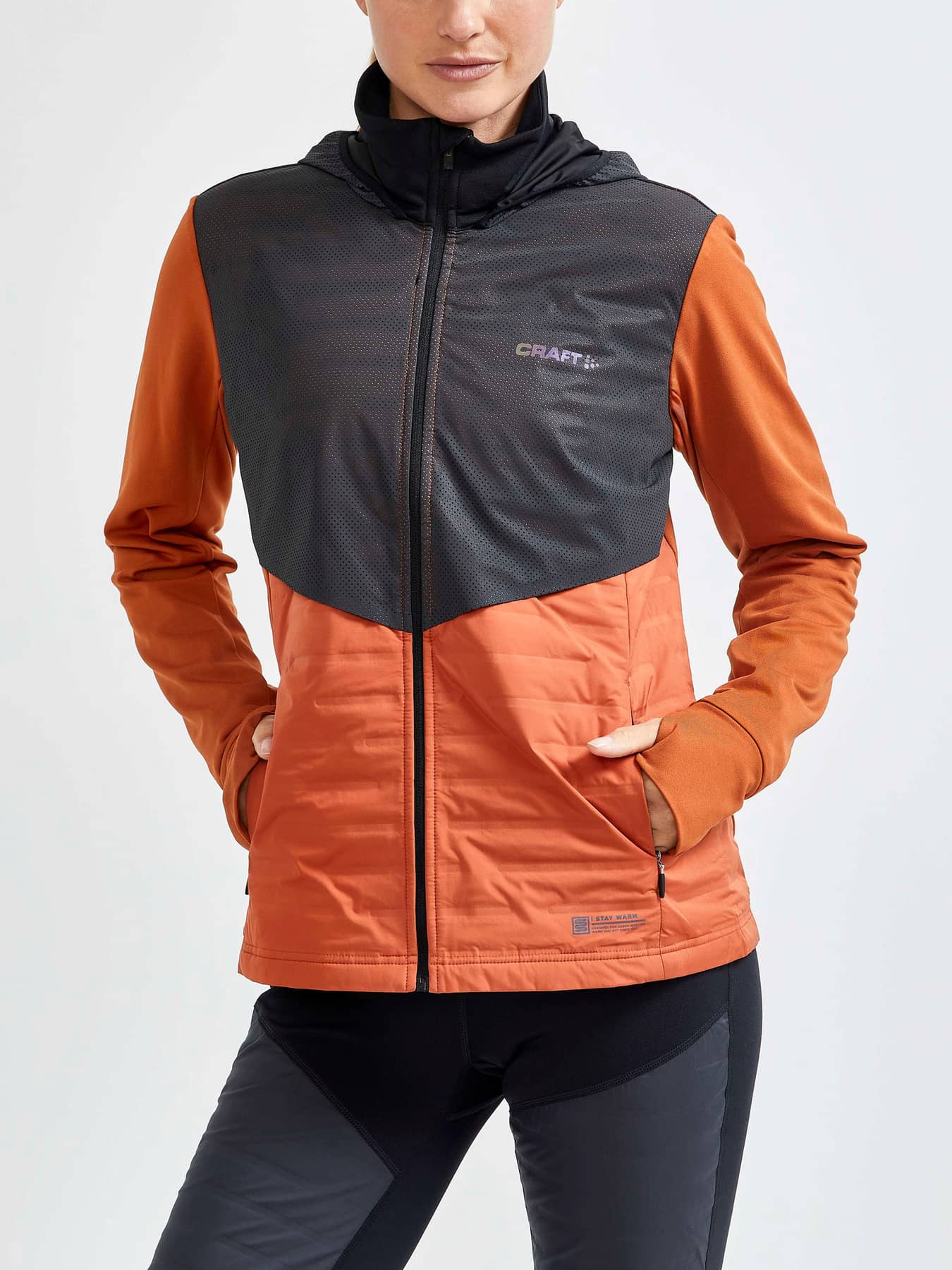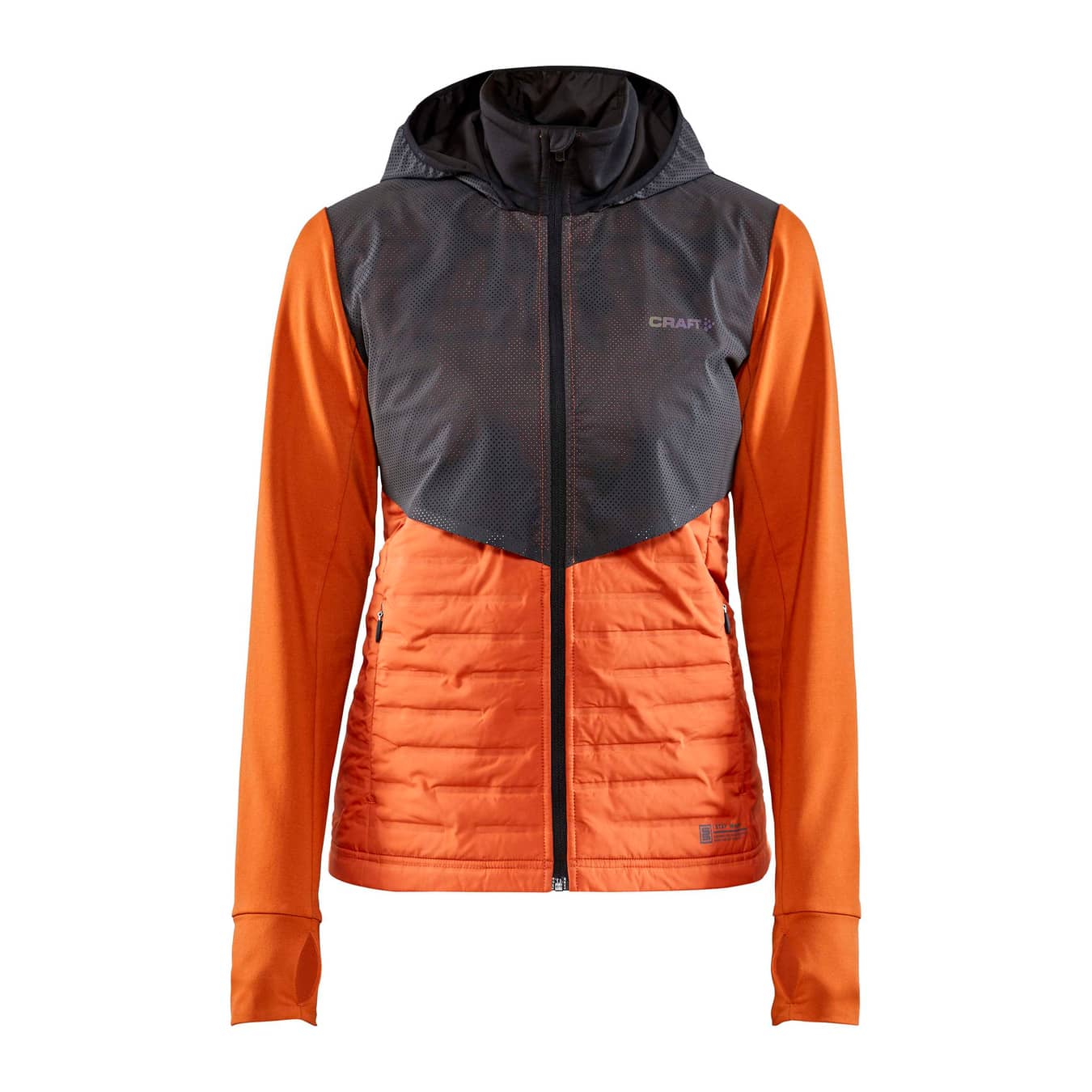 Lumen SubZ Jacket is a padded running jacket with reflective yoke that keeps you warm and visible during dark and cold winter workouts. The running jacket comes with heat-bonded light quilting at front for extra warmth and brushed jersey at sleeves and back for efficient moisture control and great comfort. Thumb grip at sleeve ends and concealed zip pockets. - Reflective perforated fabric on top of yoke - Heat-bonded light quilting at front - Brushed jersey at sleeves and back - Thumb grip at sleeve ends - Concealed zip pockets - Reflective print at front and back