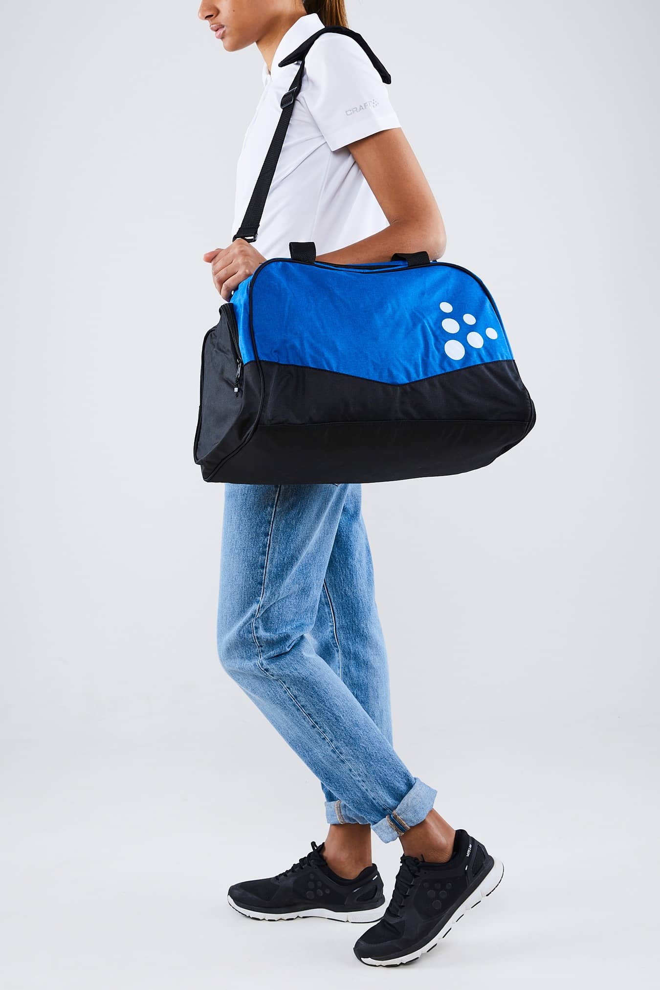 Klassieke plunjezak met duurzame polyester buitenkant, versterkte PU gecoate binnenkant, schoenvakken aan de zijkanten en schouderband. 33 l