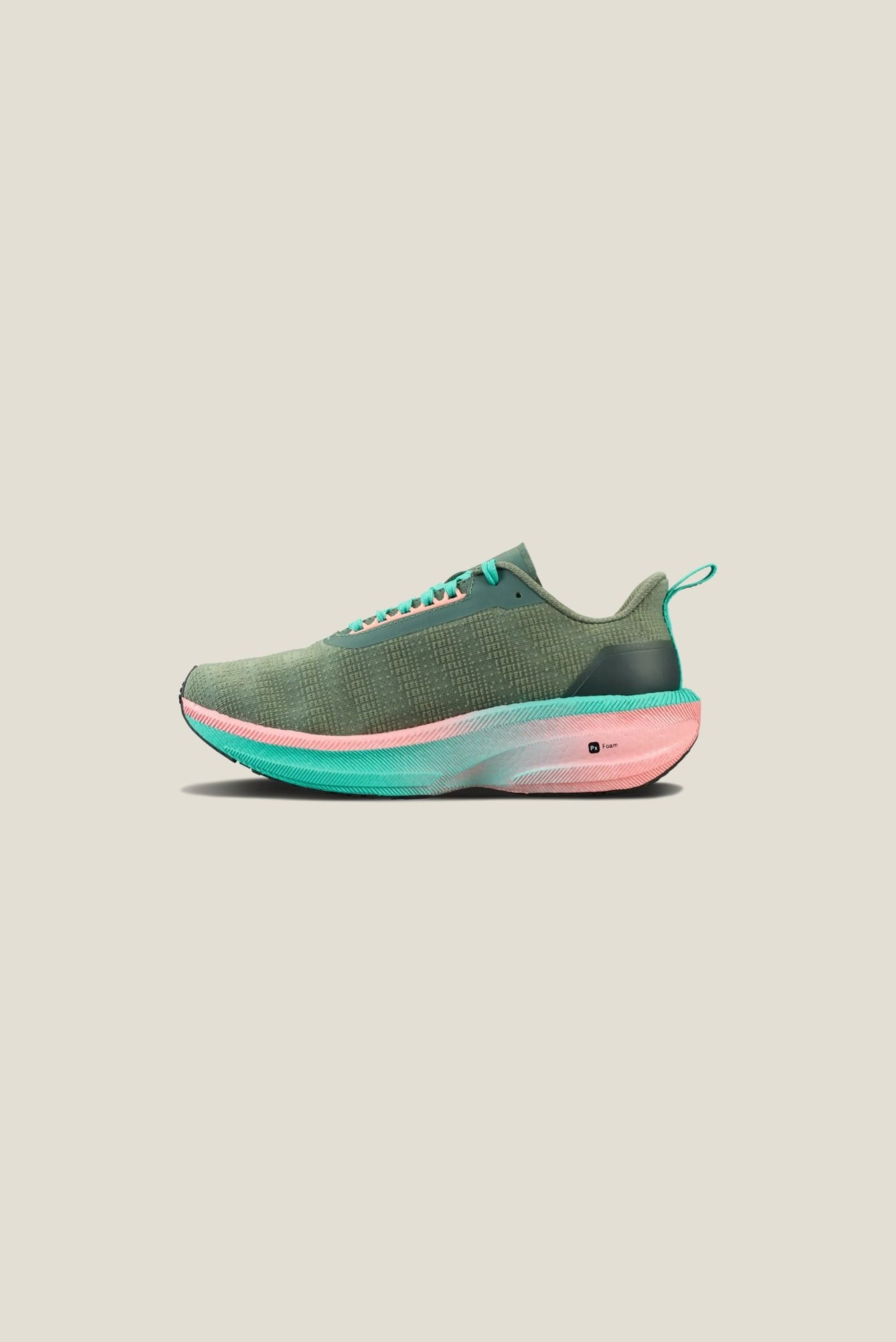 Px Foam™ er et ultralett mellomsålemateriale som utmerker seg med god energiretur, støtdemping og fleksibilitet. Dette innovative materialet er laget av et enkelt, naturlig skummiddel, og er produsert uten kjemiske tverrbindingsmidler, noe som sikrer en giftfri prosess. I tillegg er både råvarer og ferdige materialer fullstendig gjenbrukbare. Det høytytende skummet har ekstremt lav tetthet, noe som gjør det opptil 20 % lettere enn tradisjonell EVA. Den reduserte vekten kombinert med eksplosiv rebound gjør Px Foam™ perfekt for alle løpeturer.