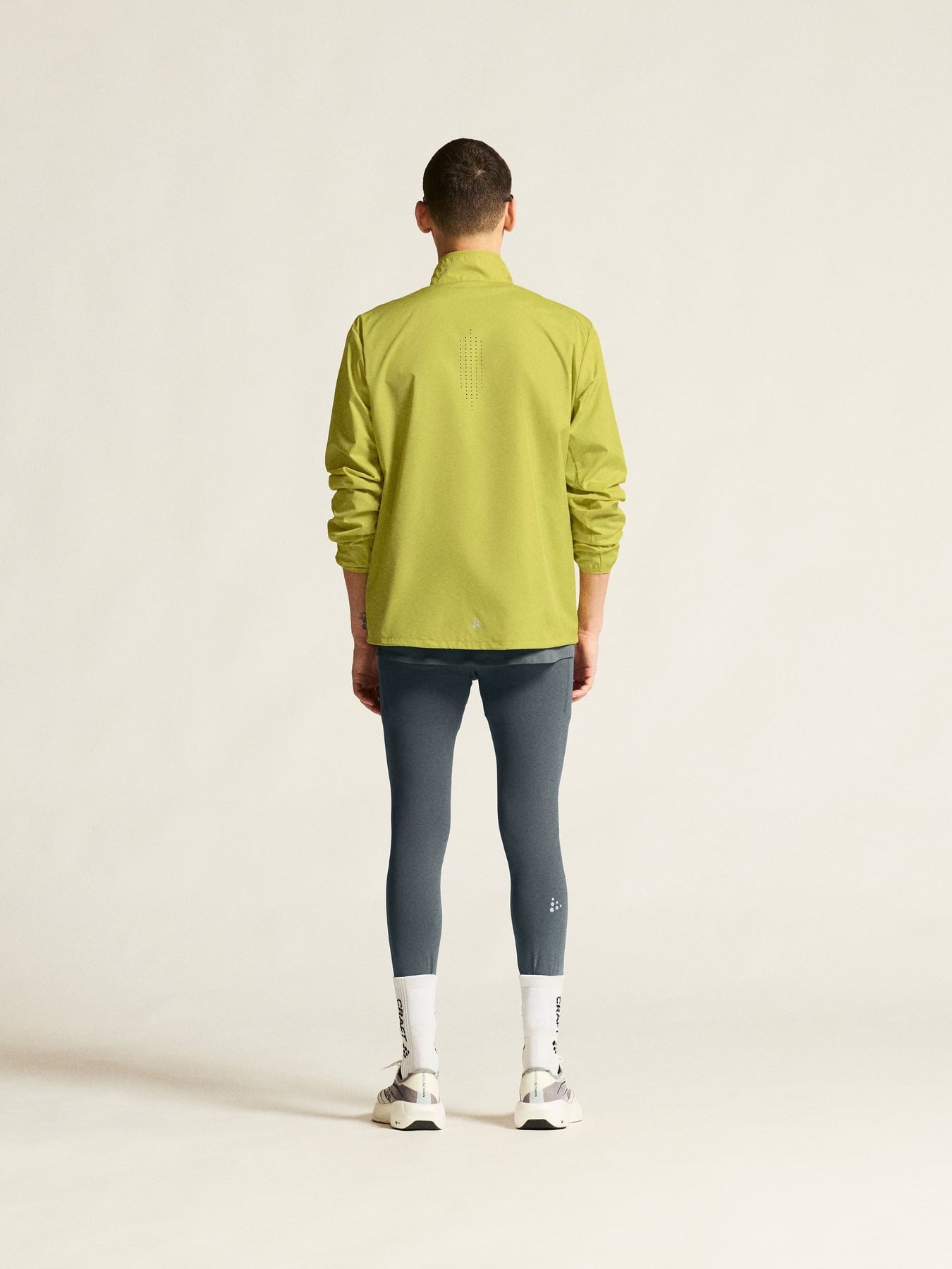 Denne allsidige vindjakken har et lett, vind- og vannavvisende stoff laget av resirkulert materiale som gir effektiv fukttransport under intense treningsøkter i vindfulle forhold. Perforeringer midt bak, under armene og foran på skuldrene gir forbedret ventilasjon, mens en brystlomme med glidelås og to sidelommer med glidelås sørger for sikker oppbevaring av nøkler, energibarer og andre nødvendigheter.
