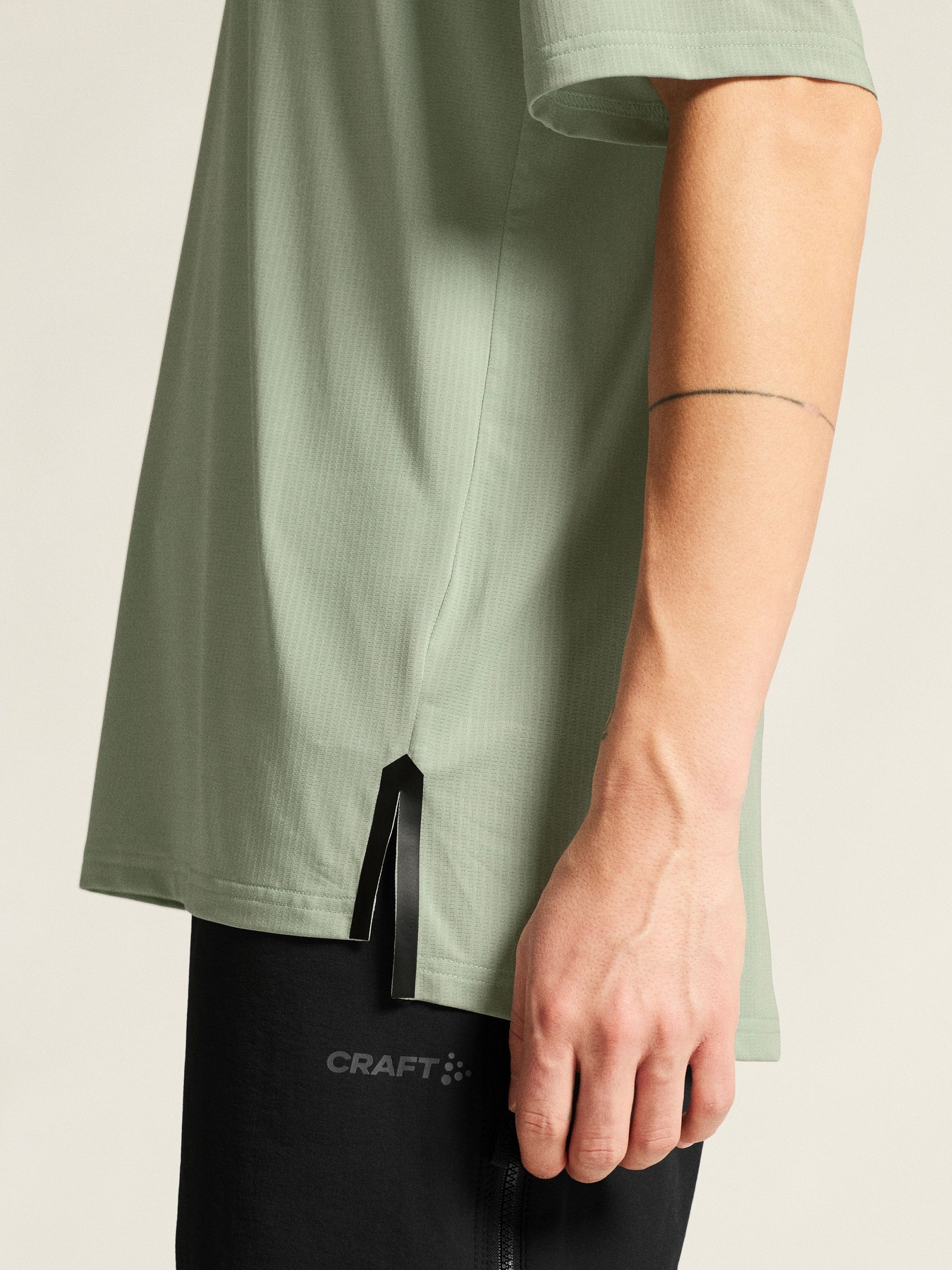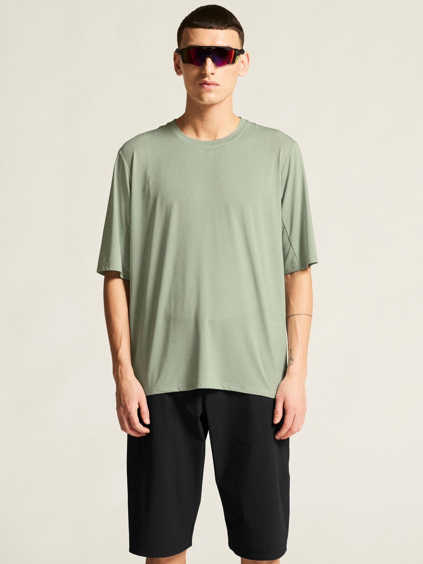 Den funksjonelle sykkeltrøyen har et elastisk og slitesterkt nettingstoff laget av resirkulert polyester, noe som sikrer god passform og utmerket bevegelsesfrihet. Splitter i sidene forbedrer mobiliteten, mens den løse passformen sikrer god komfort og en avslappet hverdagslook.