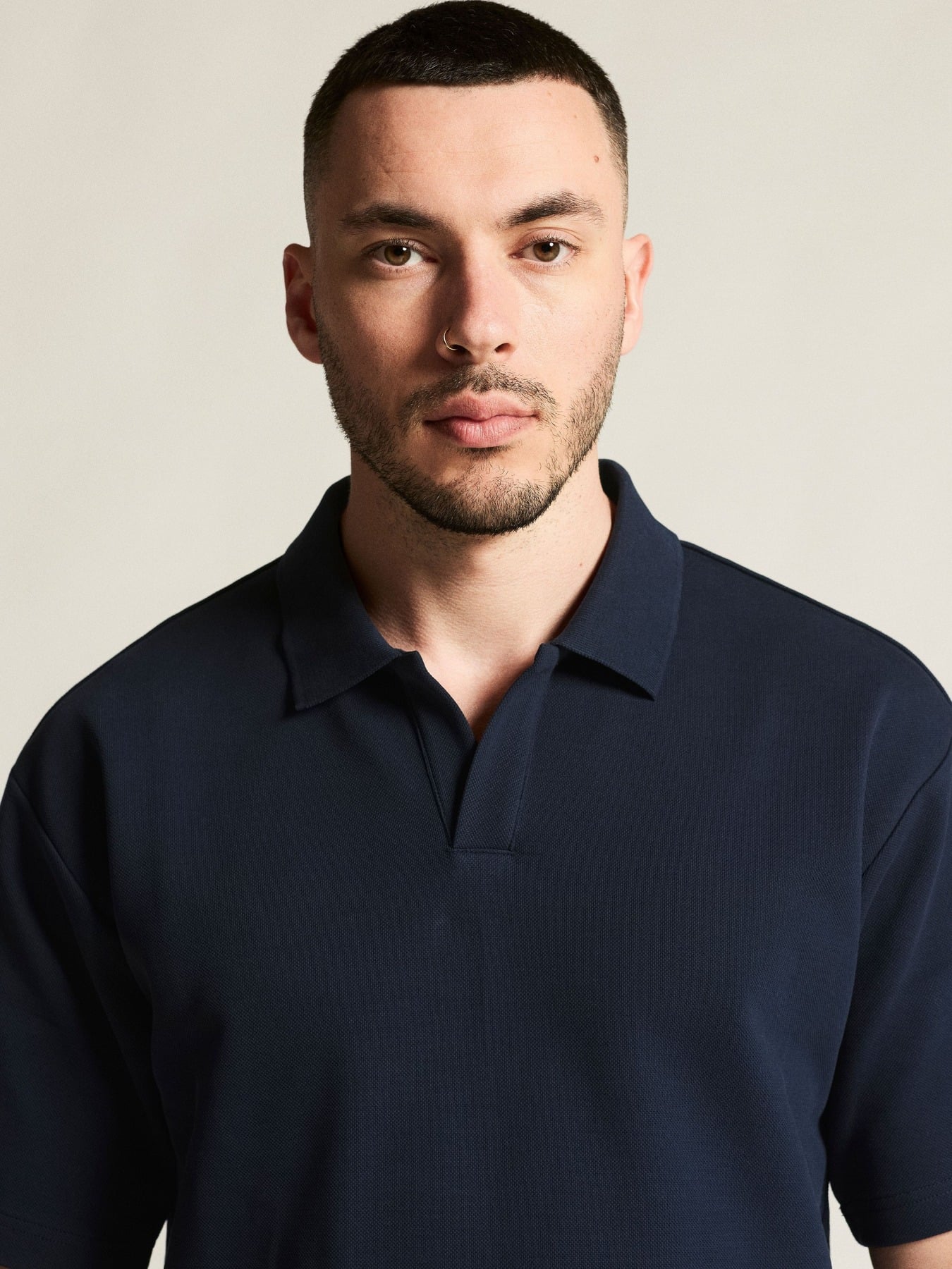 Den er laget av kraftig 100 % økologisk bomull, og gir utmerket komfort og slitesterk kvalitet. Den avslappede passformen og den rene, knappeløse kragen skaper en perfekt balanse mellom komfort og stil – perfekt for moderne og enkle hverdagsantrekk. Kan krympe opptil 5 %.