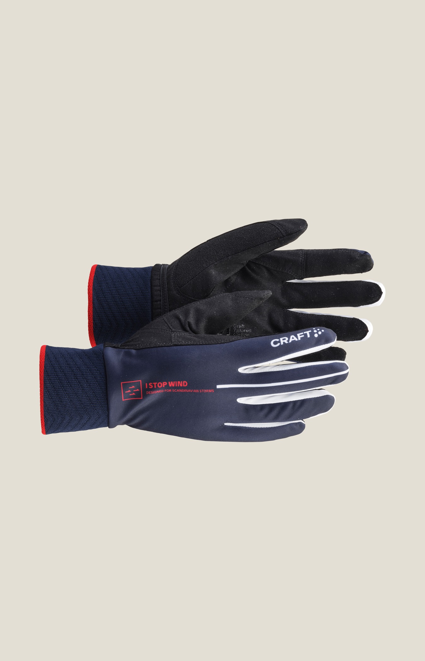 • Elastiskt og vindtett materiale med mikrofleece-fôr på baksiden av hansken