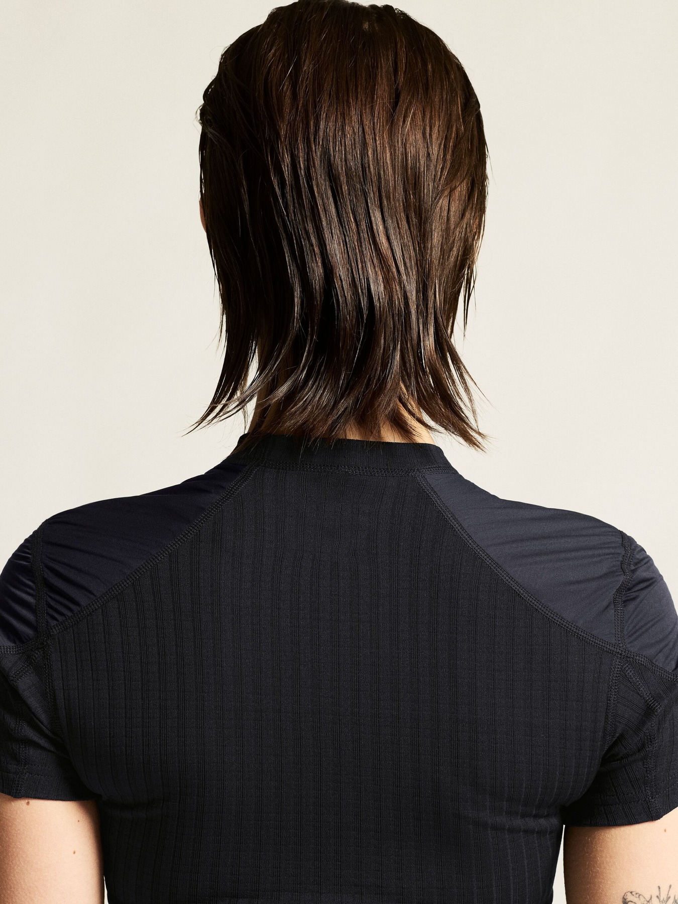 Kortermet baselayer trøye i resirkulert materiale med vindbeskyttelse i front for konkurranser og høyintensiv trening i vind og kulde.