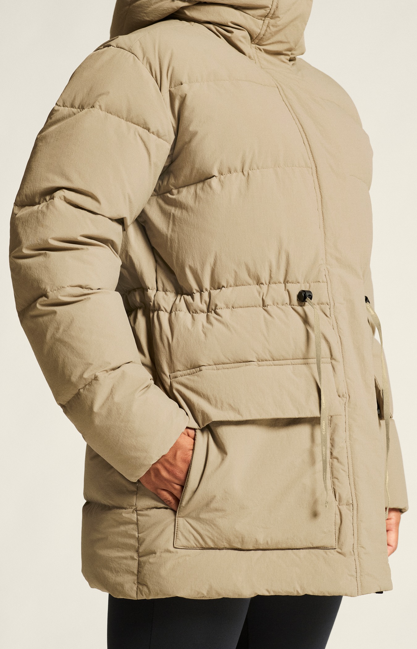 Urban Down Puffer Jacket er en uformell dunjakke som gir eksepsjonell isolasjon og varme under virkelig kalde vinterforhold. Denne stilige pufferjakken er laget for både fritid og formelle anledninger, og kombinerer sømløst funksjon og et minimalistisk uttrykk. Det vannavvisende ytterstoffet kombineres med tykk dunisolasjon for å gi eksepsjonell varme når temperaturen synker. I tillegg har jakken to romslige håndvarmende lommer, en beskyttende hette og en justerbar midje for en skreddersydd passform og en flatterende silhuett. Det hoftelange snittet gir ekstra tildekning for bedre varme og komfort på kjølige vinterdager. • Ytterstoff laget av 100 % resirkulert polyamid • Vannavvisende overflate • Dunfyll, 80 dun/20 fjær • Hette • Justerbar snøring i midjen • Innvendig brystlomme • To håndvarmende lommer • YKK-glidelås • Hoftelangt snitt • Normal passform