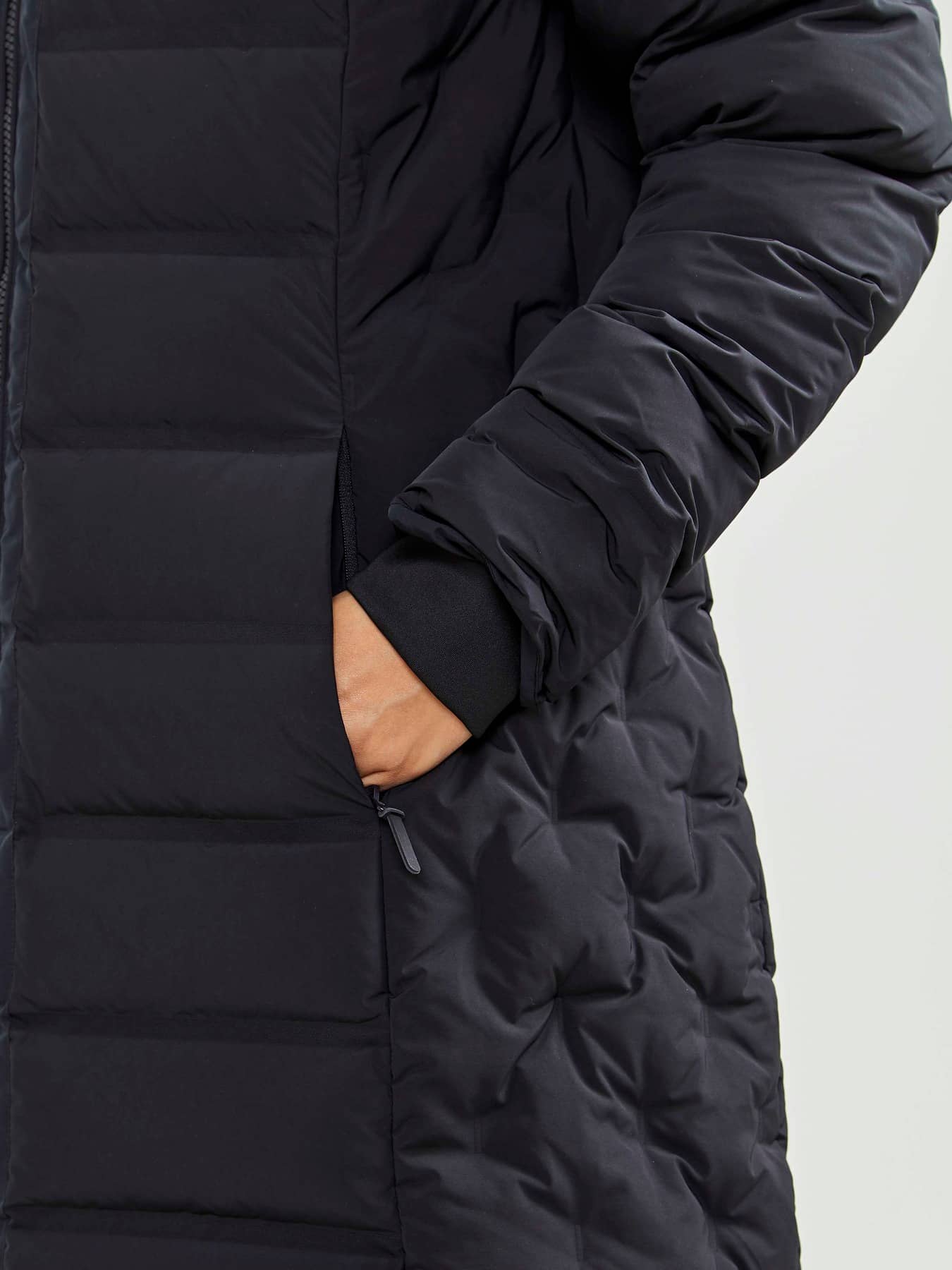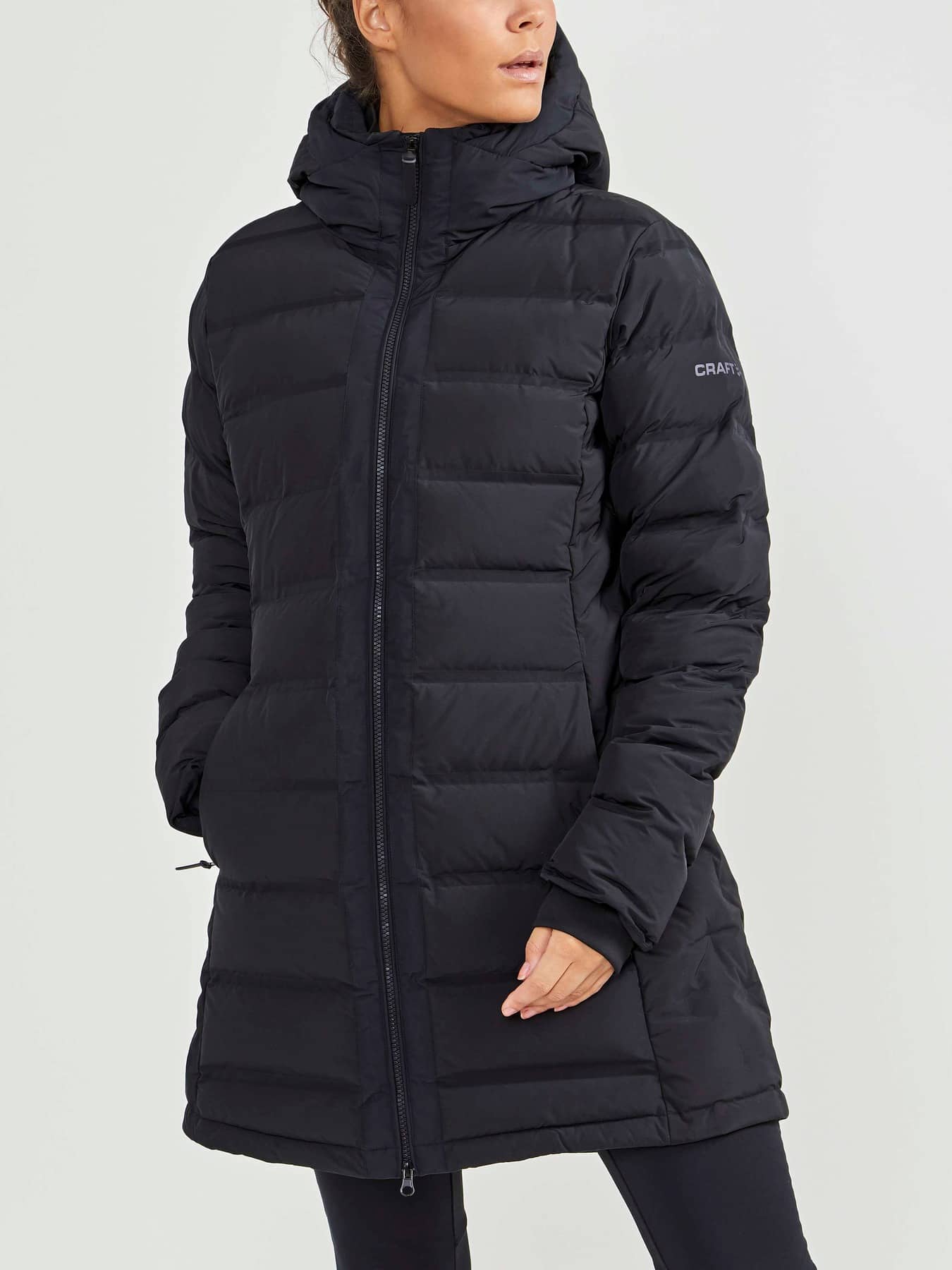 ADV Classic Down Parka är en varm dunparkas med snyggt vävda dunkanaler, hög krage och vadderad huva för kalla höst- och vinterdagar. Plagget har ett vattenavvisande yttertyg som skyddar mot lätt duggregn samt två sidfickor med dragkedja. Craft använder bara dun som är certifierat av Responsible Down Standard (RDS) vilket säkerställer djurens välfärd i dunproduktionen. Det innebär att dunet inte kommer från uppfödare där tvångsmatning sker eller där plockning av levande djur förekommer. - Vaddering 50% RDS-certifierat dun och 50% polyester - Vattenavvisande ytbehandling - Dekorativa kanaler i sidorna - Hög krage skyddar mot väder och vind - Två sidfickor med dragkedja - Normal passform - Rygglängd: 88 cm i storlek M