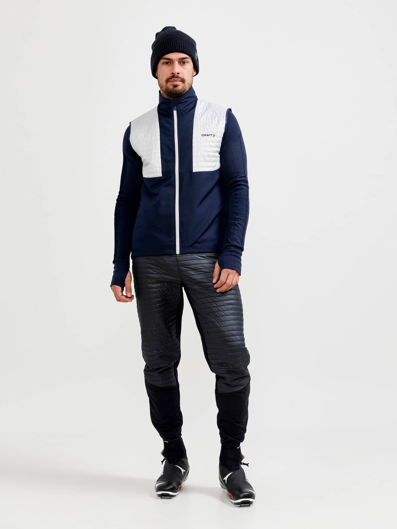 ADV Storm Insulate Nordic Vest är en lätt vadderad väst för längdskidåkare som tränar intensivt även i kalla och blåsiga förhållanden. Denna varma och stretchiga längdåkningsväst har en kviltad, tunn vaddering i frontens överdel, ripstop-material i frontens nederdel samt borstad trikå i ryggen för effektiv fukttransport och ventilation. Passar perfekt även som uppvärmningsväst. • Funktionell polyester och tunn vaddering i överdel • Vindavvisande ripstop-material av återvunnen polyester i frontens nederdel • Borstad trikå av återvunnen polyester i ryggen • Två dolda framfickor med dragkedja