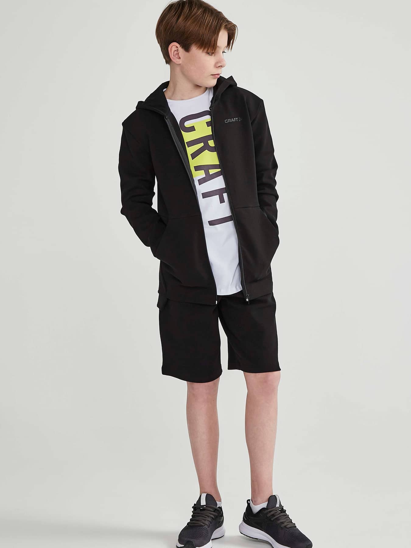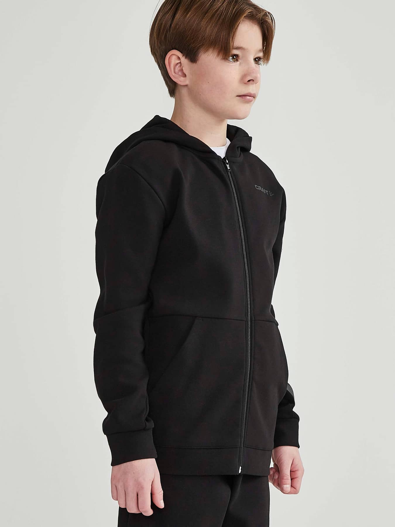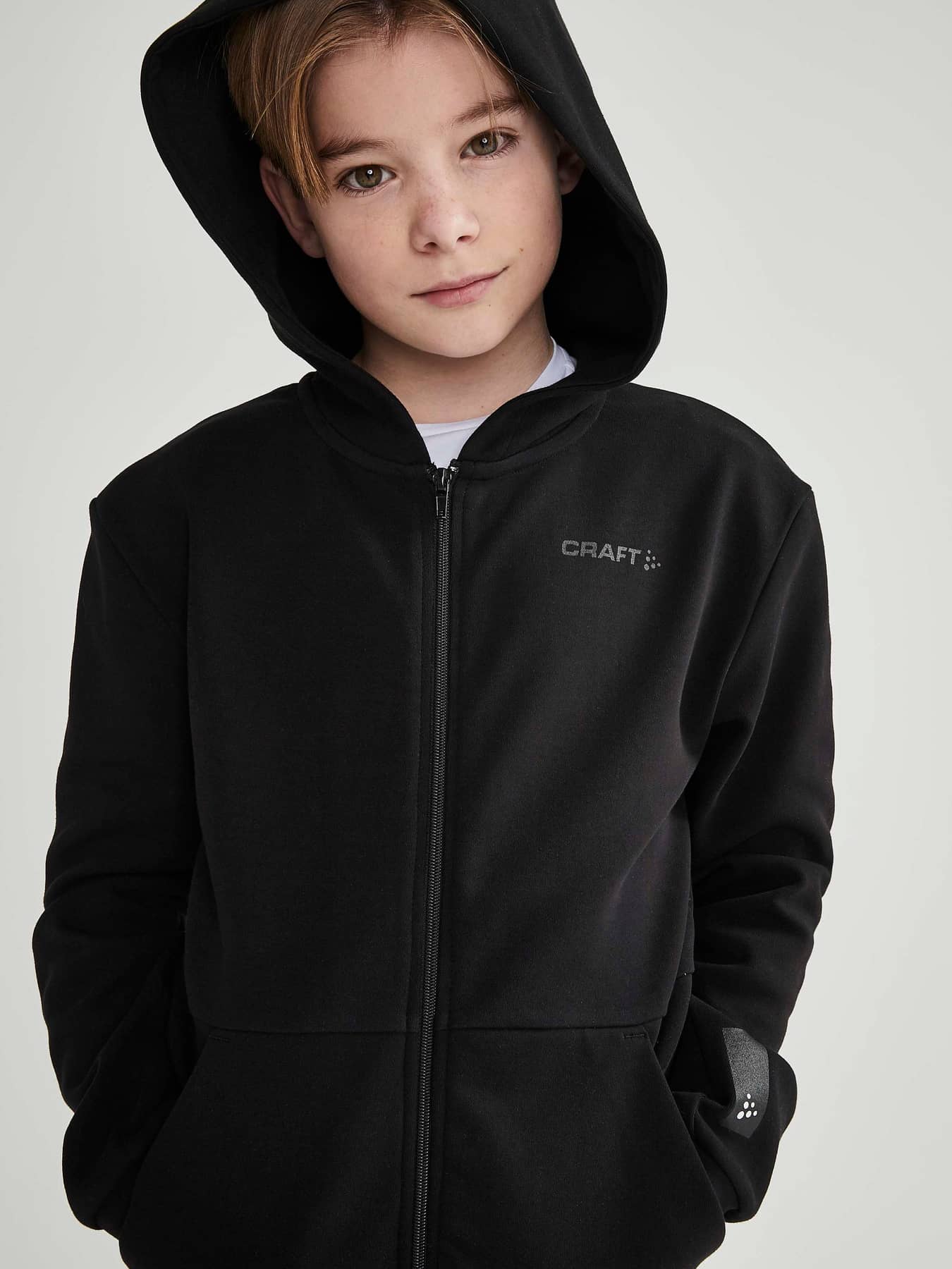 Arch Twisted Zip Hood Jr är en stilren huvjacka med twistade sid- och ärmsömmar, hög komfort och stark identitet. Jackan är gjord i ett mjukt material och har en klassisk design samt känguruficka. Ett avslappnat plagg som passar till de flesta vardagsaktiviteter. - Hoodie med hel dragkedja fram - Atletisk passform - Känguruficka - Craft-logo på bröstet och six dot på ena ärmen - Lång passform