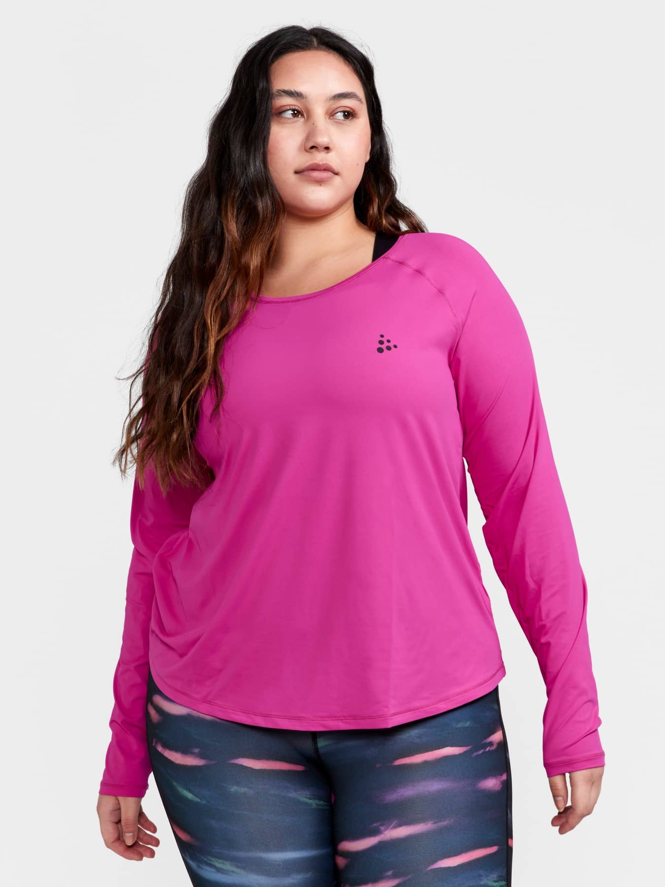 CORE Essence LS Plus Tee är en långärmad tränings-t-shirt som passar till de flesta typer av träningspass. Plagget är gjort av återvunnen polyester med effektiv fukttransport och har plus-size-passform. • Mjuk trikå av återvunnen polyester • Rundad nedtill • Plus-size regular fit