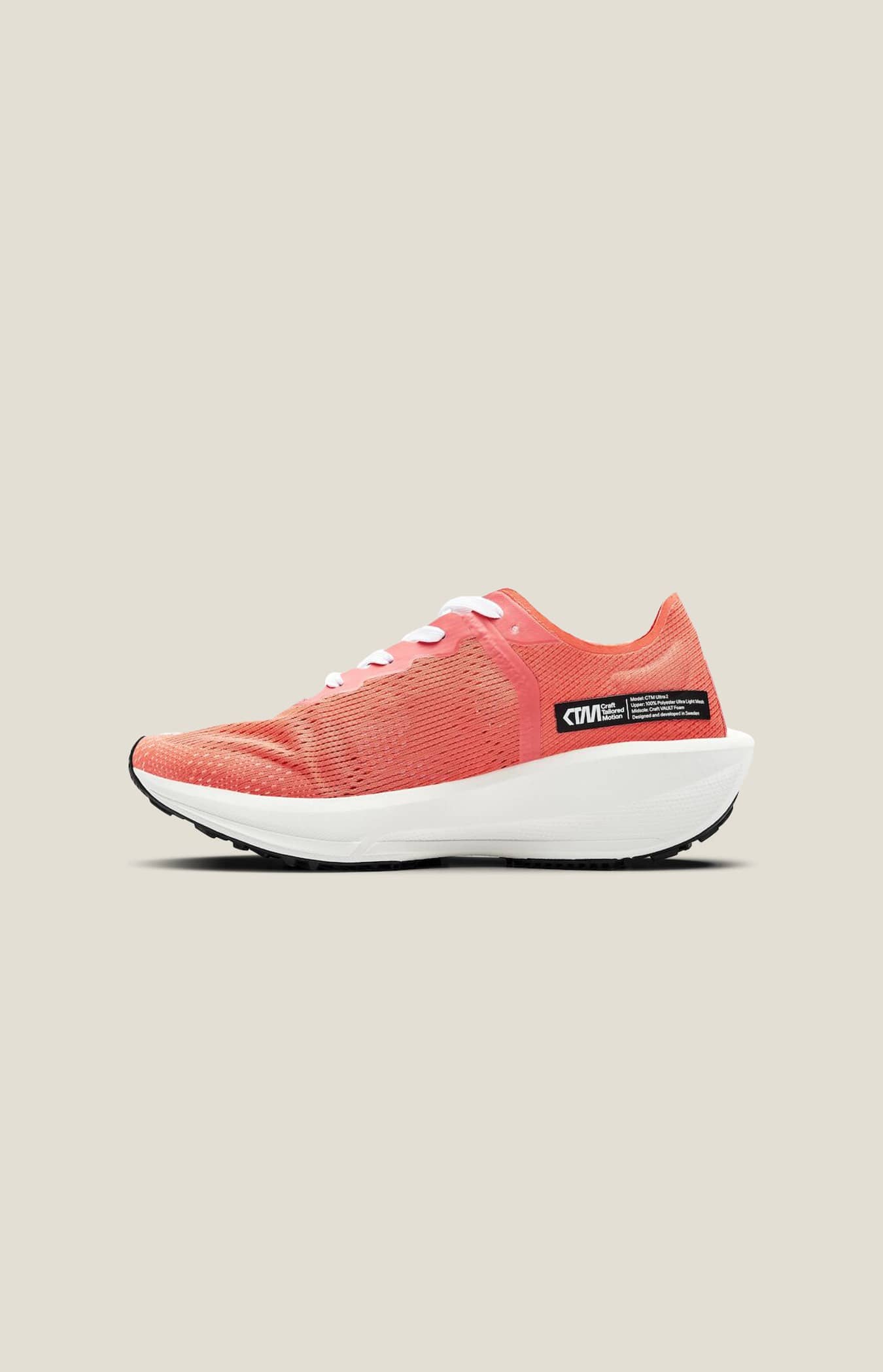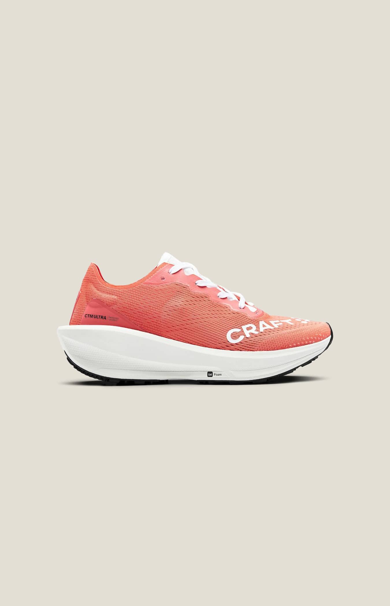 CTM Ultra 2 är en lätt löparsko för hängivna löpare som tränar hårt och fokuserat. Denna tekniskt avancerade och högfunktionella löparsko är perfekt för löpare som springer långt och ofta. Skon har en UD Foam mellansula med mycket bra respons och en överdel i mesh med effektiv ventilation. En lätt, snabb och slitstark partner för dig som samlar mil i högt tempo. Ultra Ultra-konceptet är byggt för hög fart under långa sträckor och innefattar lätta och snabba löparskor som kan användas på olika typer av underlag. Plattformen ger en perfekt balans mellan sultjocklek, drop och anfallsvinkel, vilket innebär att du kan bibehålla bästa möjliga löpsteg under lång tid. CTM – innovation i världsklass CTM står för Craft Tailored Motion och innefattar de mest avancerade materialen och de senaste innovationerna för de mest krävande atleterna. Ett naturligt val när maximal funktion, suverän respons och låg vikt är högsta prioritet. Anatomic Racing Fit CTM Ultra 2 kombinerar en tight passform runt foten med en anatomisk tåbox. Resultatet är en löparsko som sitter perfekt för maximal kraftöverföring vid högintensiv löpning och som samtidigt låter tårna spridas ut för optimal komfort och ett mer naturligt löpsteg. Denna anatomiska racingpassform är formad för att ge dig mer kraft och hjälpa dig att springa snabbare. Om du är mellan två storlekar, eller föredrar extra utrymme, rekommenderar vi att du väljer en storlek större än normalt. - Ovandel i högfunktionell mesh - UD Foam mellansula: lätt, högresponsiv och slitstark - Högresponsiv innersula - 3-delad yttersula i gummi med bra grepp för effektiv löpning på såväl asfalt som grusväg och i skiftande väderförhållanden - Vikt UK5 195 gram - Total sultjocklek 40 mm - Drop 10 mm
