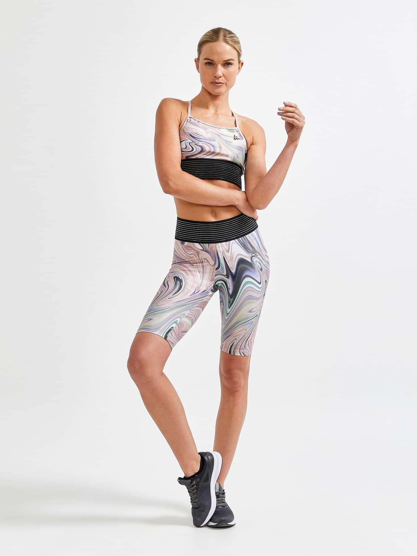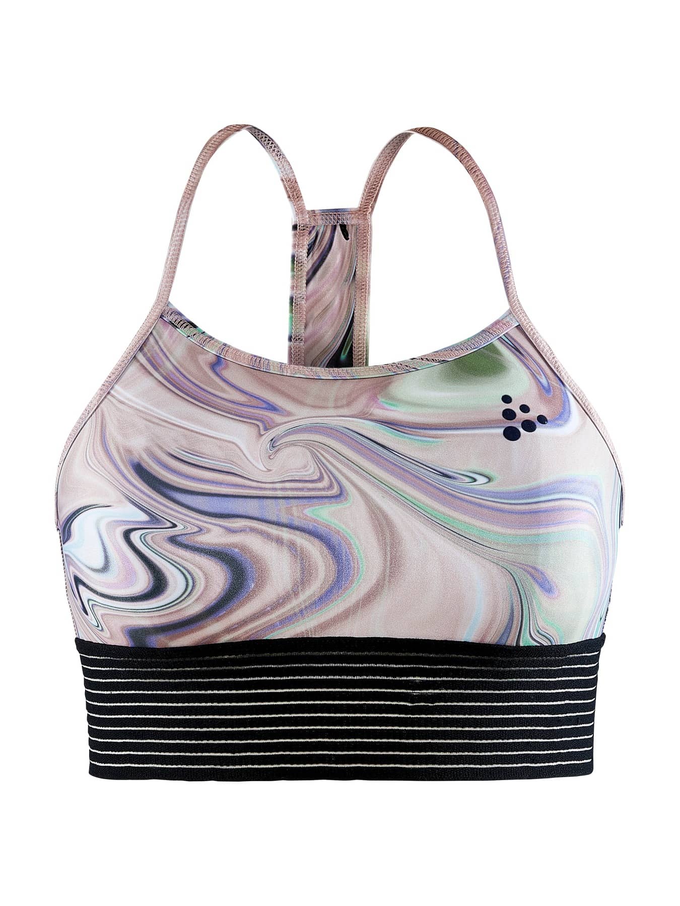 Flow Light Sport Top är en funktionell sportbehå med ett glansigt, psykedeliskt uttryck. Behån har dessutom bred elastisk resår under bysten med lättare support för optimal komfort vid yoga och liknande aktiviteter med skönt flow. - Glansigt material - Tight passform - Lättare support - Bred elastisk resår nedtill för stöd och bekväm passform - Fodrad front