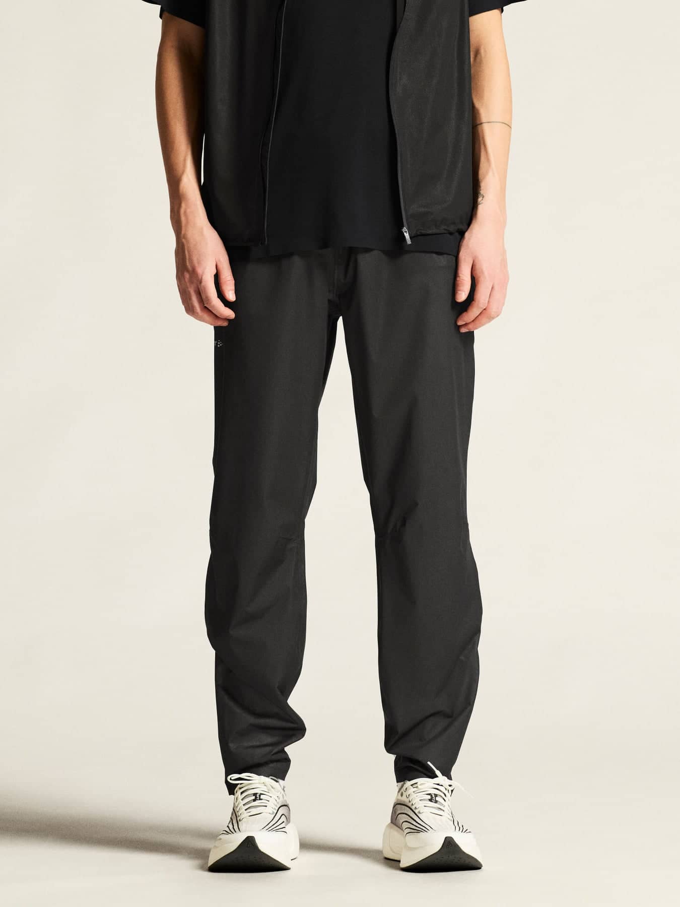Dessa högpresterande löparbyxor är gjorda av ett tunt och stretchigt 2-lagers material som ger bra väderskydd och effektiv ventilation. Plaggets låga vikt och bra stretch ger optimal rörelsefrihet, vilket gör det perfekt för högintensiva träningspass i våta förhållanden. Byxorna har även tejpade sömmar, justerbar dragsko i midjan samt dragkedja i sidorna nedtill för enkel av- och påtagning.